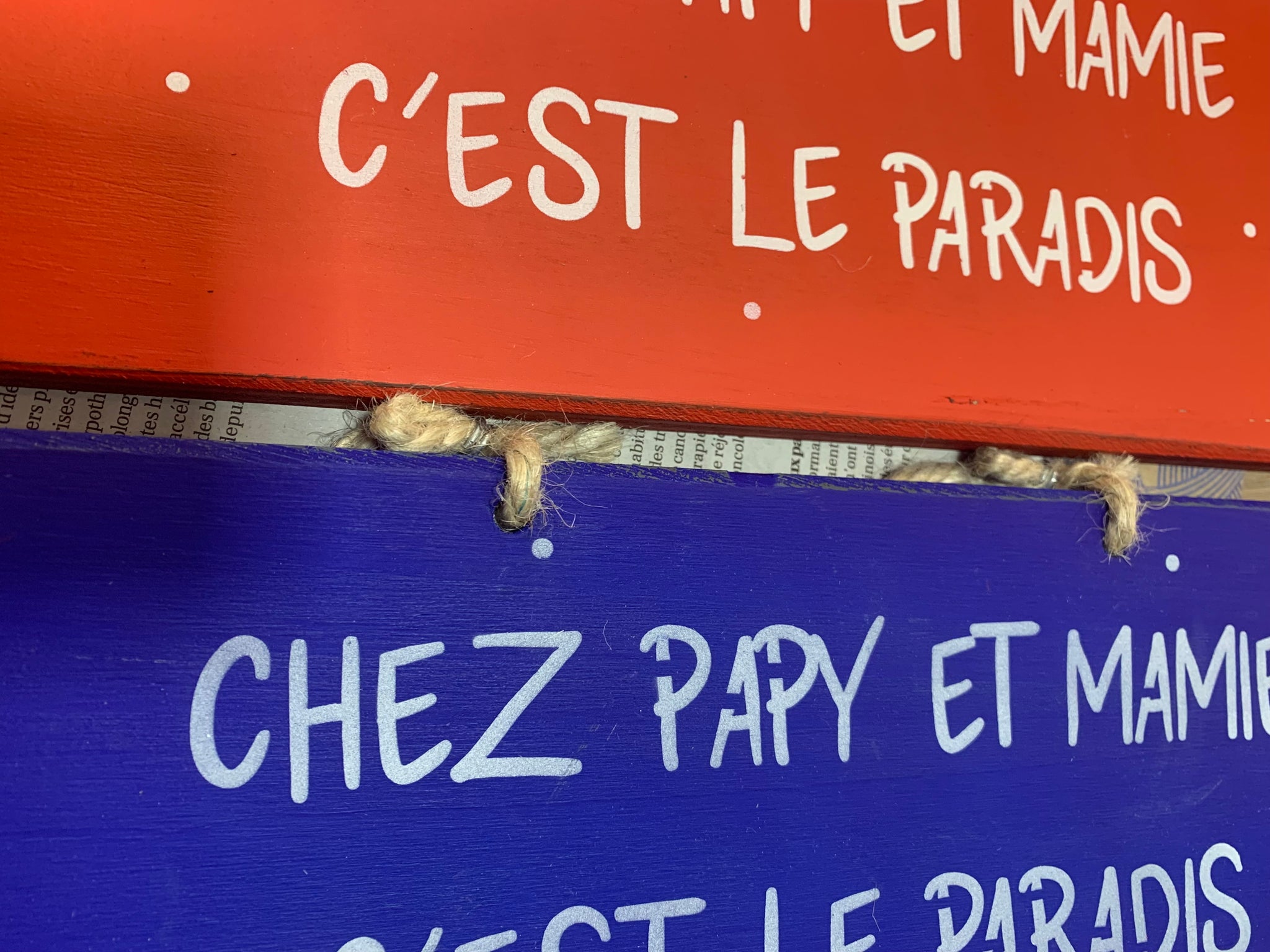 Pancarte:"Chez papy et mamie c'est le paradis".